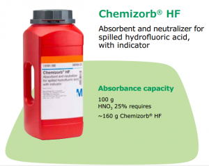 Chemizorb ® HF : เหมาะสำหรับ กรดไฮโดรฟลูออริกและอื่น ๆ กรดเจือจางหรือกึ่งเข้มข้น